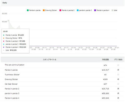本日の売上は62,563円、1,254名の心やさしい方が購入してくださったようです。