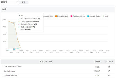 本日の売上は10,476円、210名の心やさしい方が購入してくださったようです。