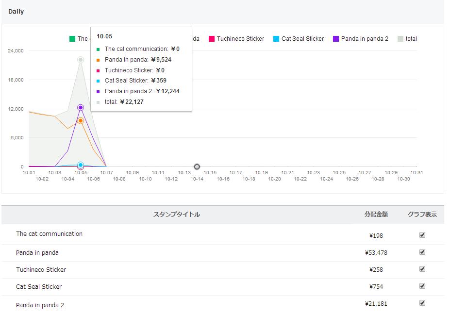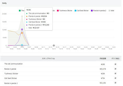 10/ 5までの累計売上 547,785円(推定10,994セット)