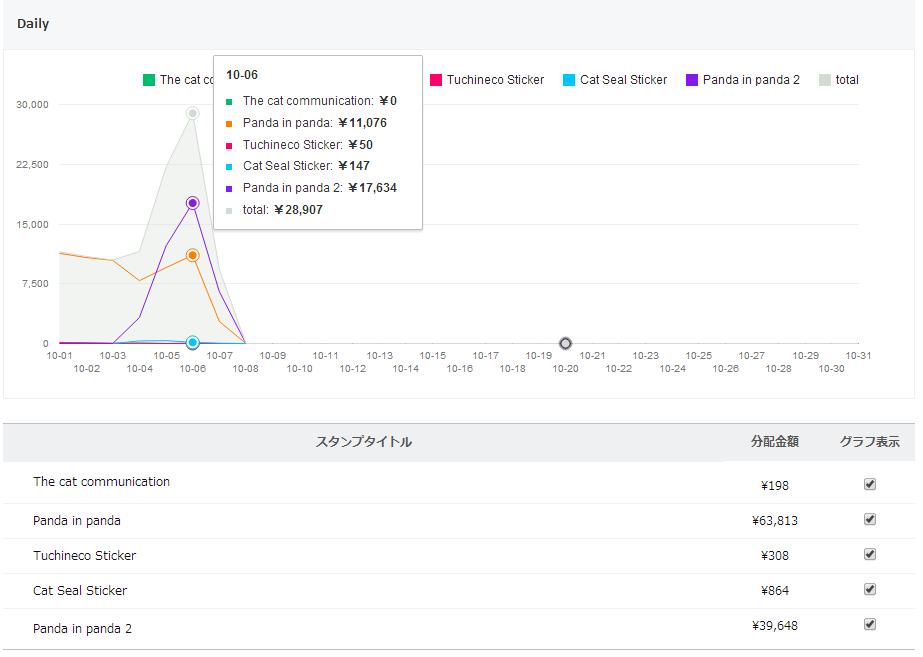 10/ 6までの累計売上 576,692円(推定11,573セット)