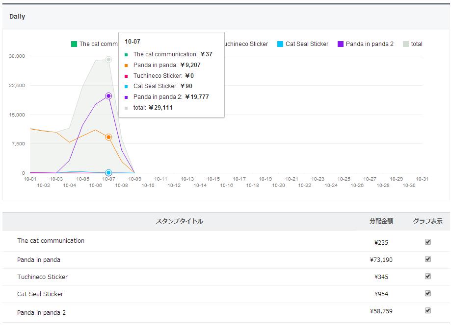 10/ 7の売上 29,111円(推定584セット)