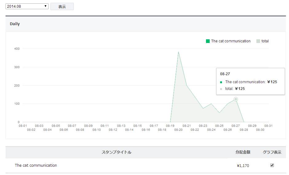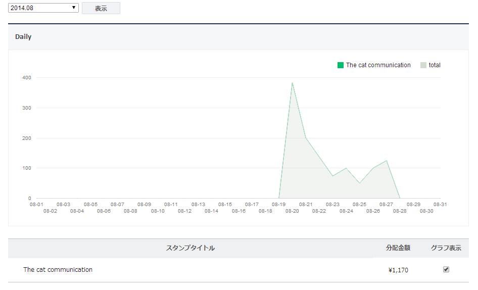 8/27までの累計売上 1,170円(推定25セット)