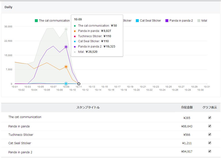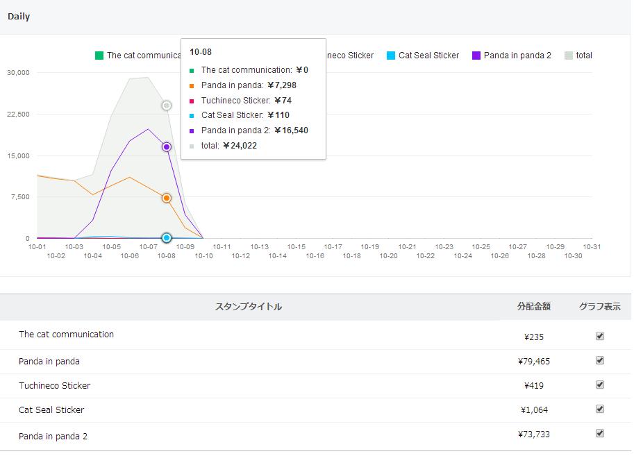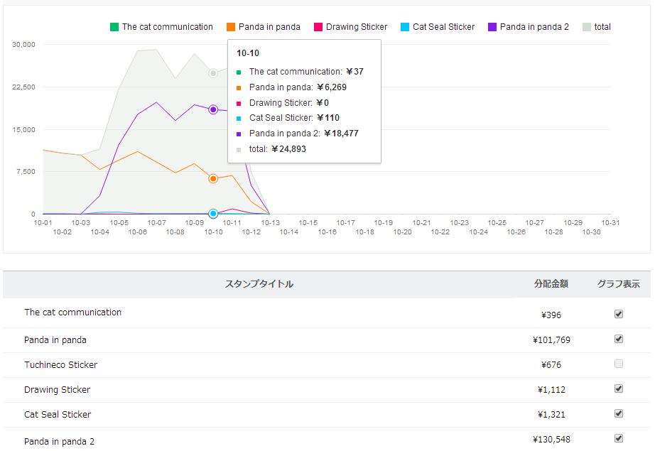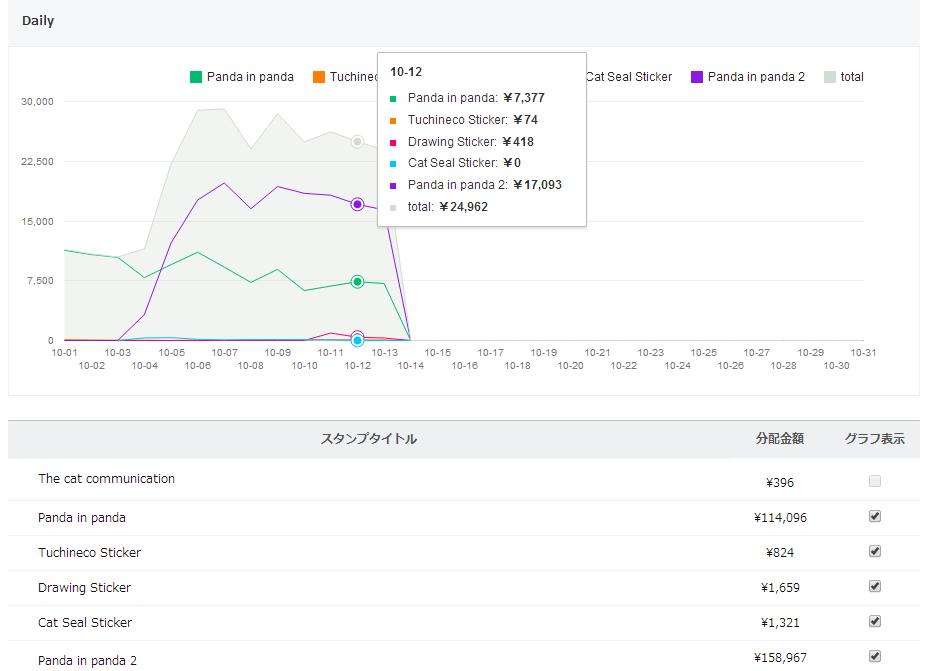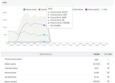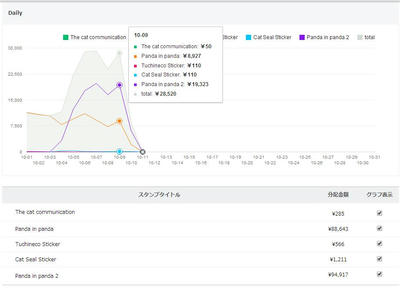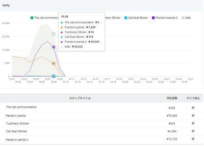 本日は「パンダinぱんだ2」の売上が右肩下がりになってしまいました。
