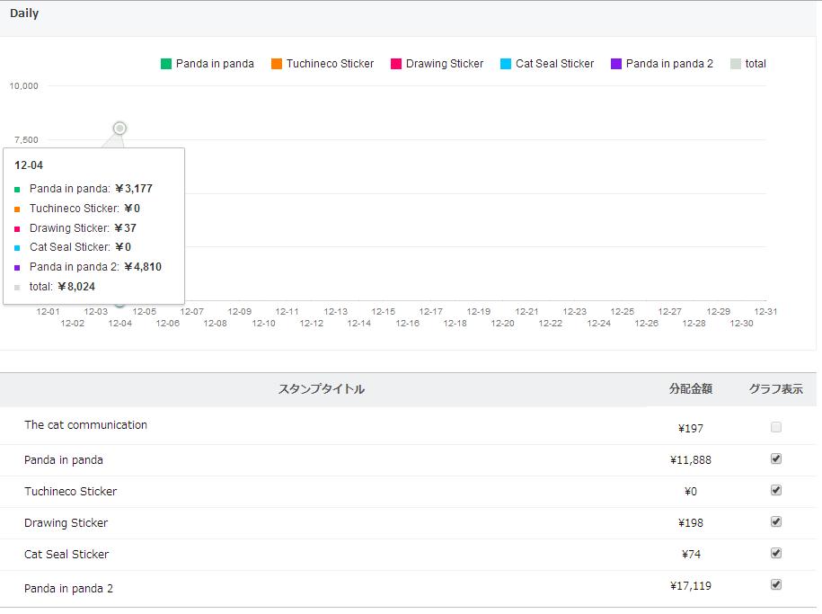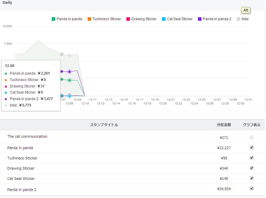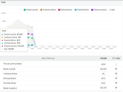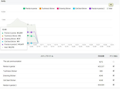 本日の売上は5,775円、117名の心やさしい方が購入してくださったようです。