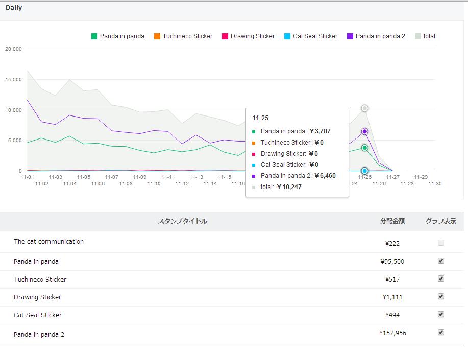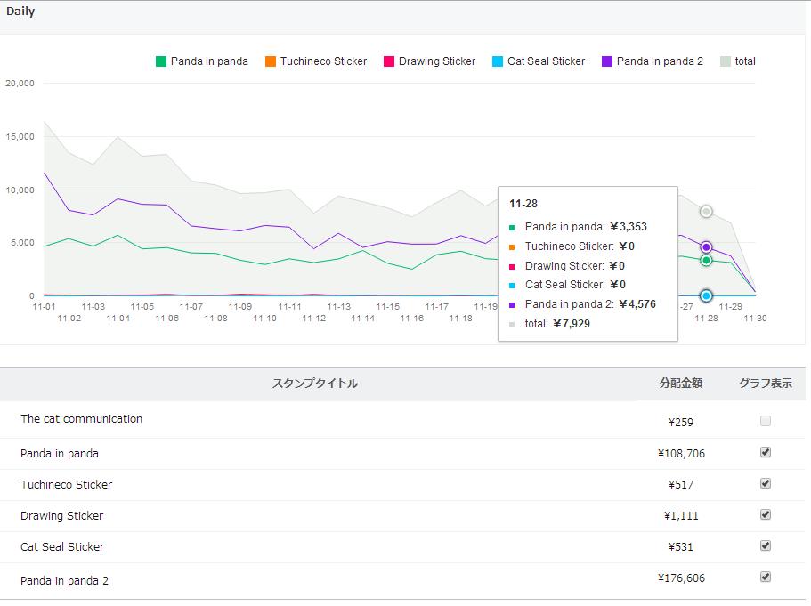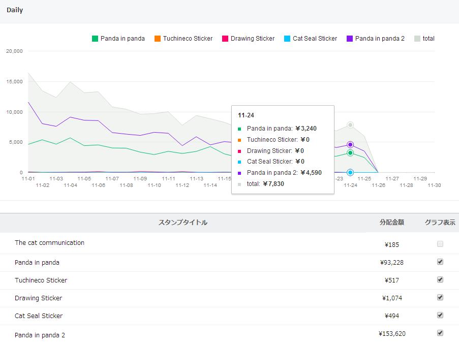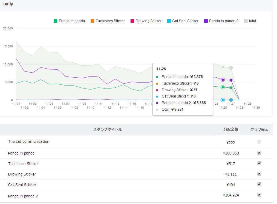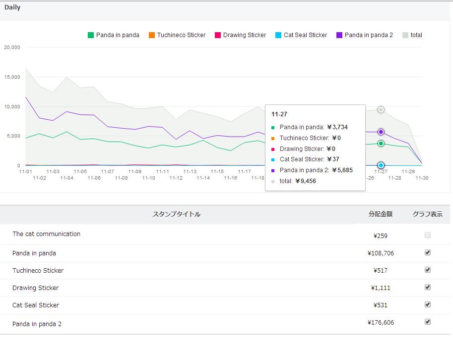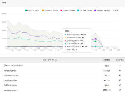 11/26までの累計売上 1,384,403円(推定27,814セット)