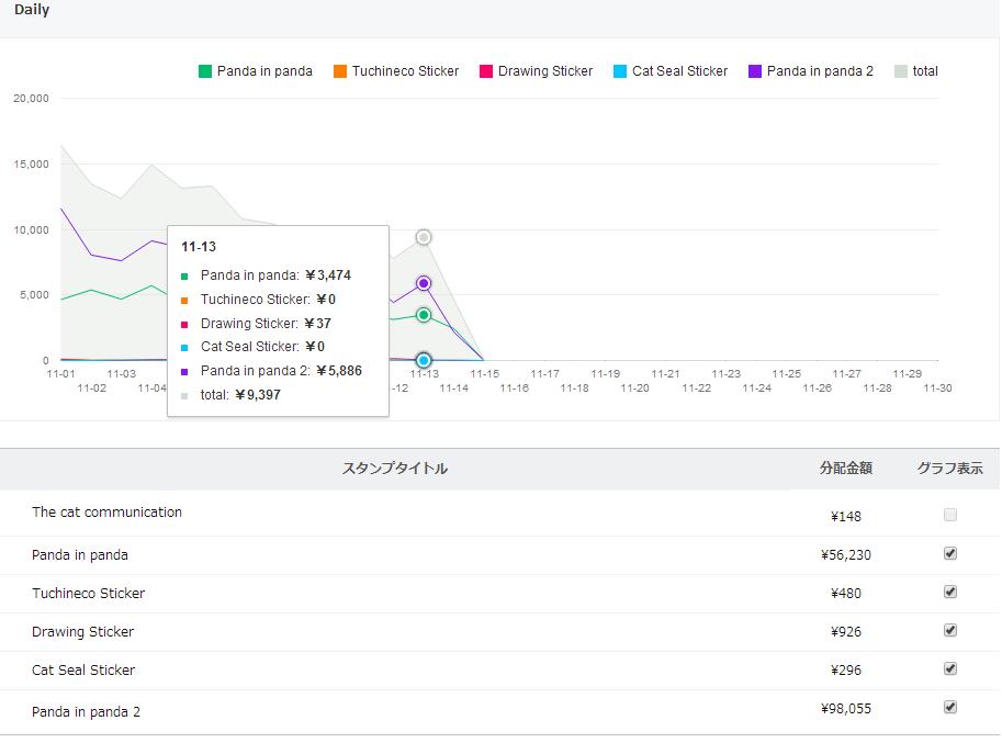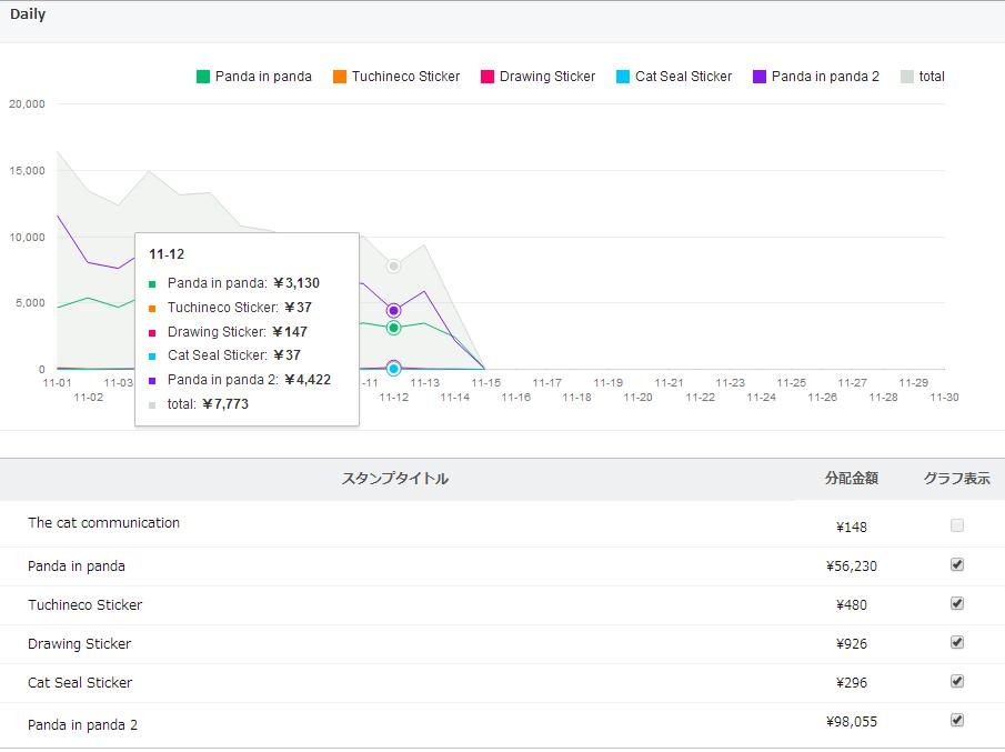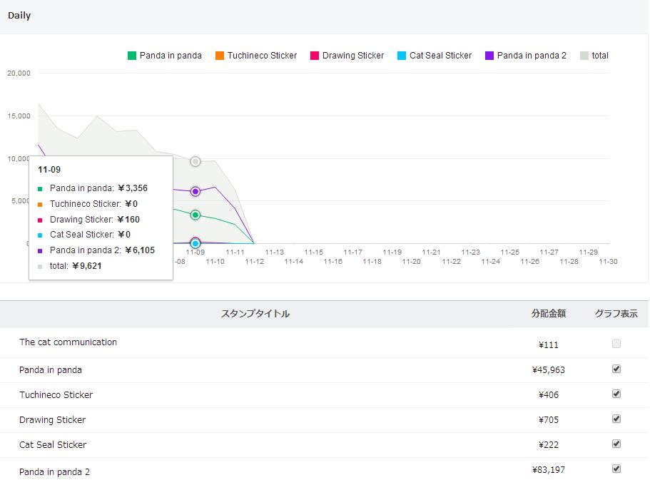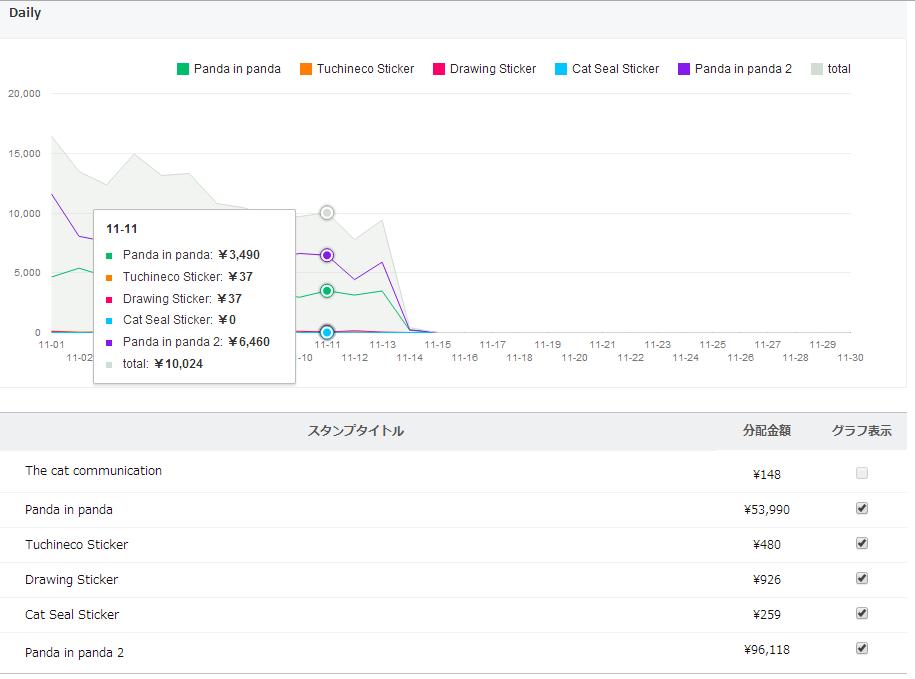 11/11までの累計売上 1,256,024円(推定25,226セット)