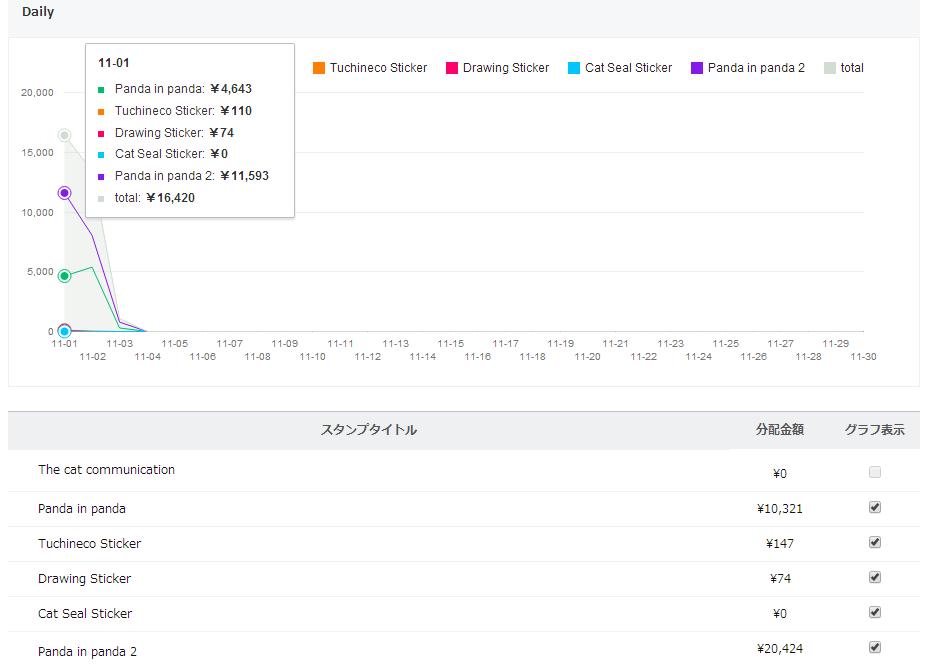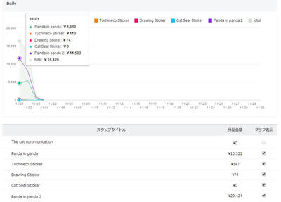 本日の売上は14,440円、291名の心やさしい方が購入してくださったようです。