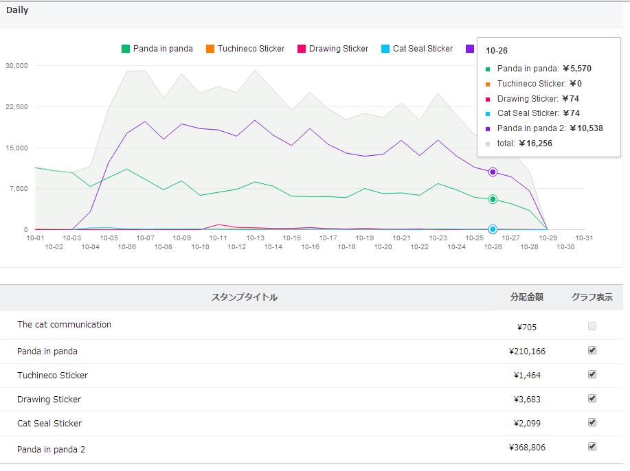 本日の売上は16,725円、336名の心やさしい方が購入してくださったようです。