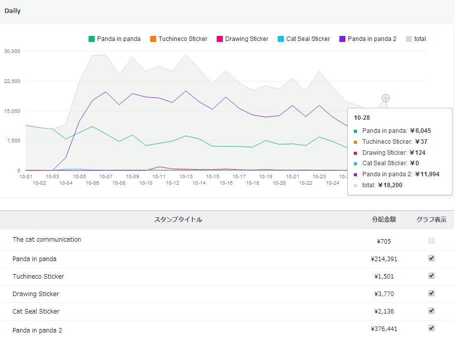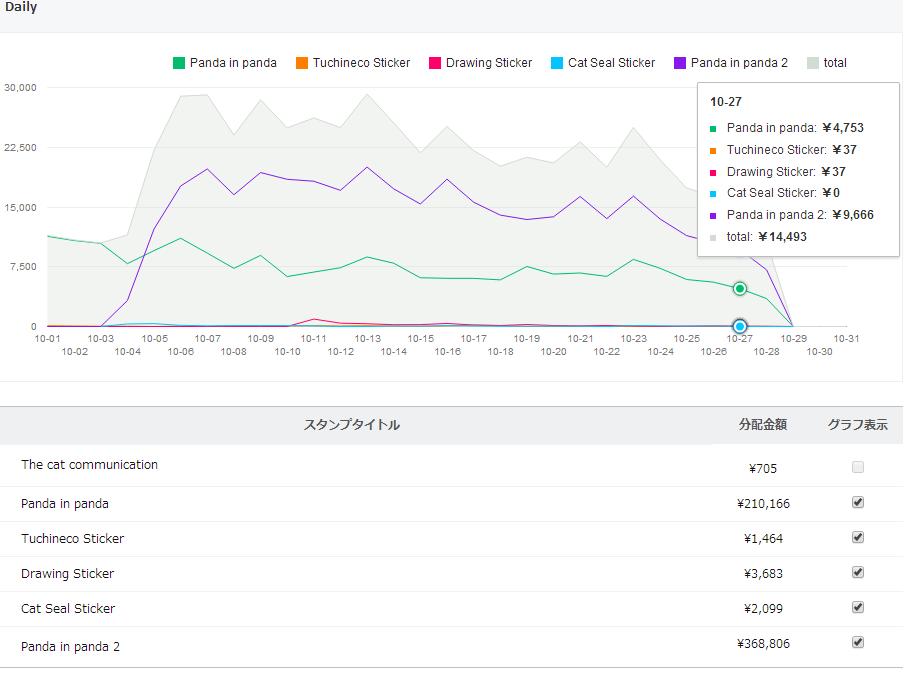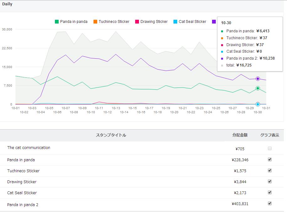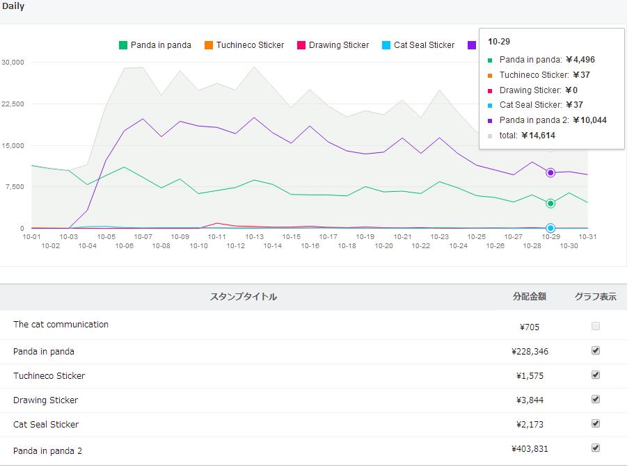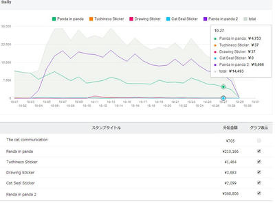 10/ 30までの累計売上 1,107,275円(推定22,229セット)