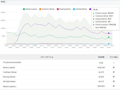 10/ 30の売上 16,725円(推定336セット)