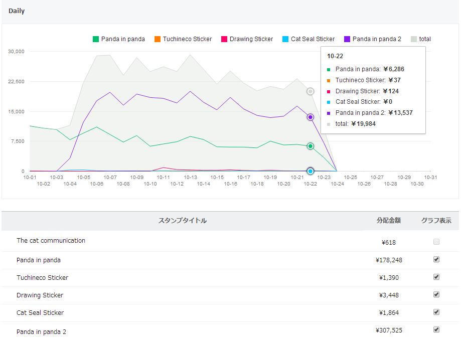 10/ 22までの累計売上 963,598円(推定19,343セット)