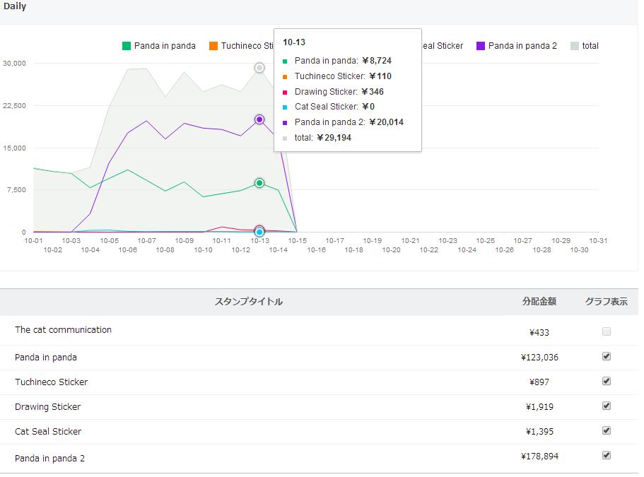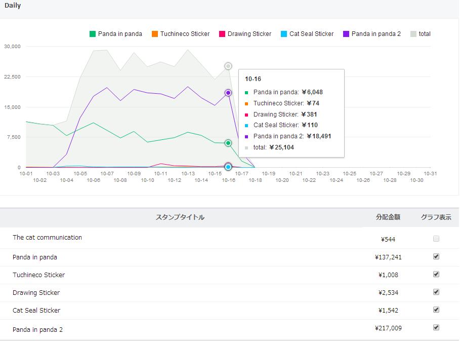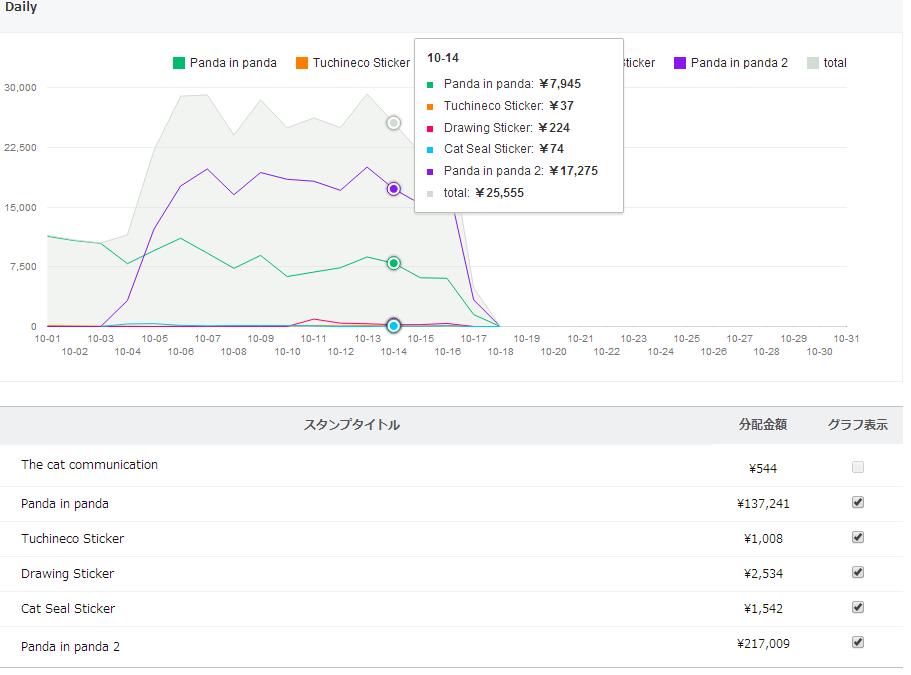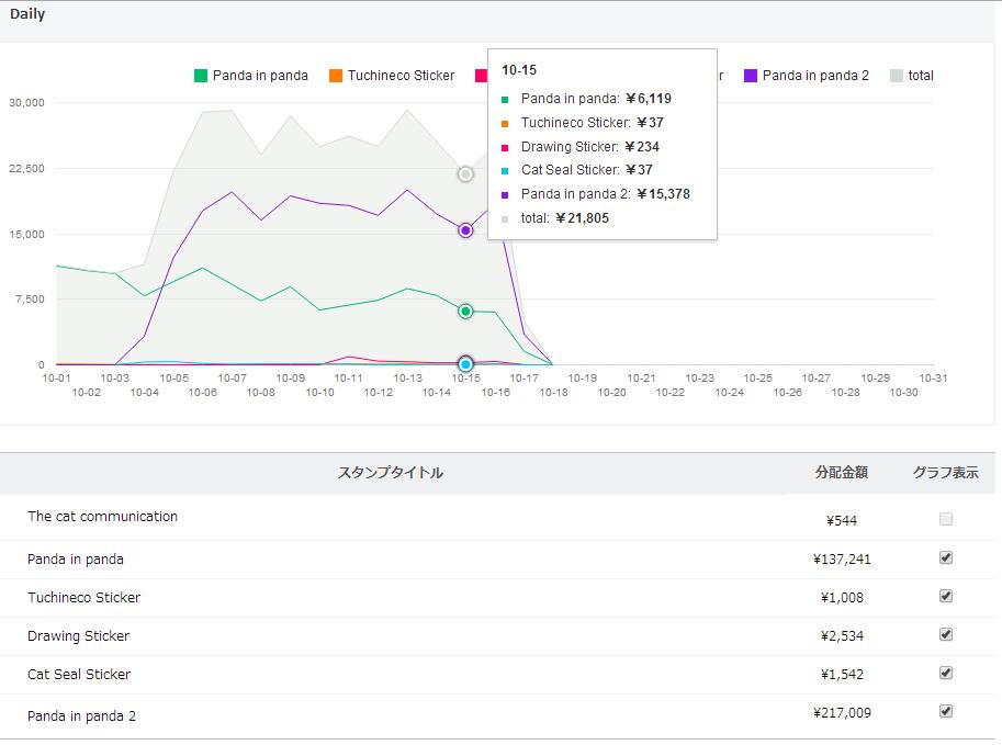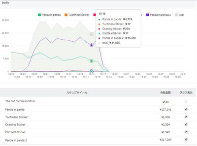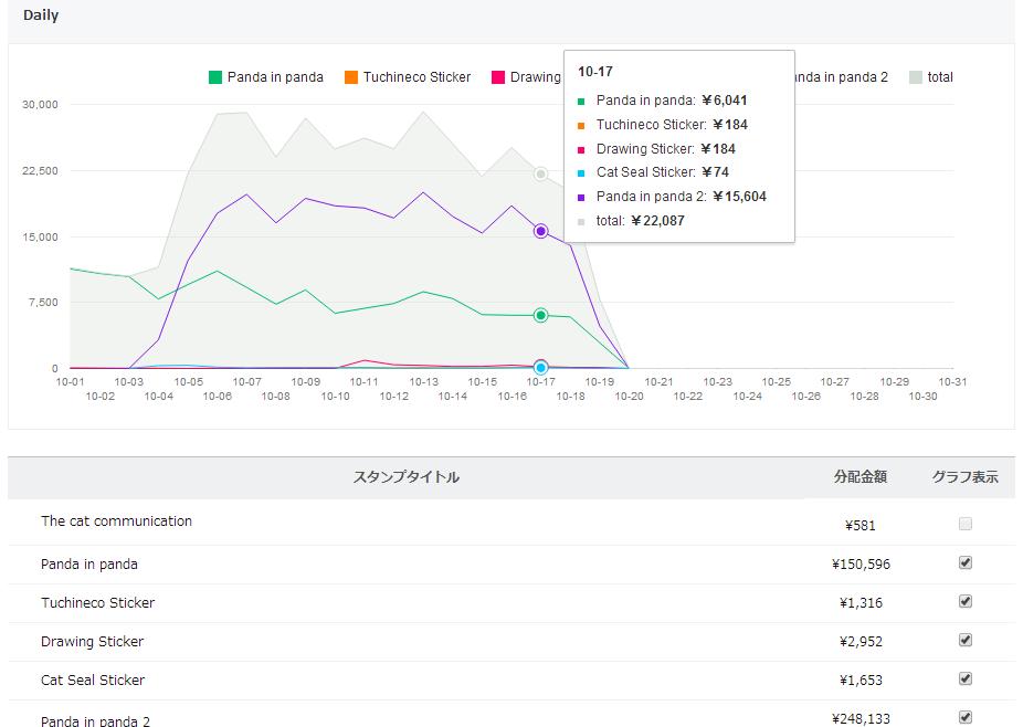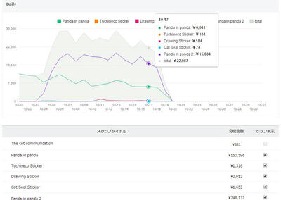 10/ 17の売上 22,087円(推定444セット)