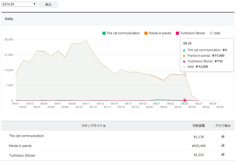 早くも期待の新スタンプ「つちねこ」の勢いは止まりました。(笑)