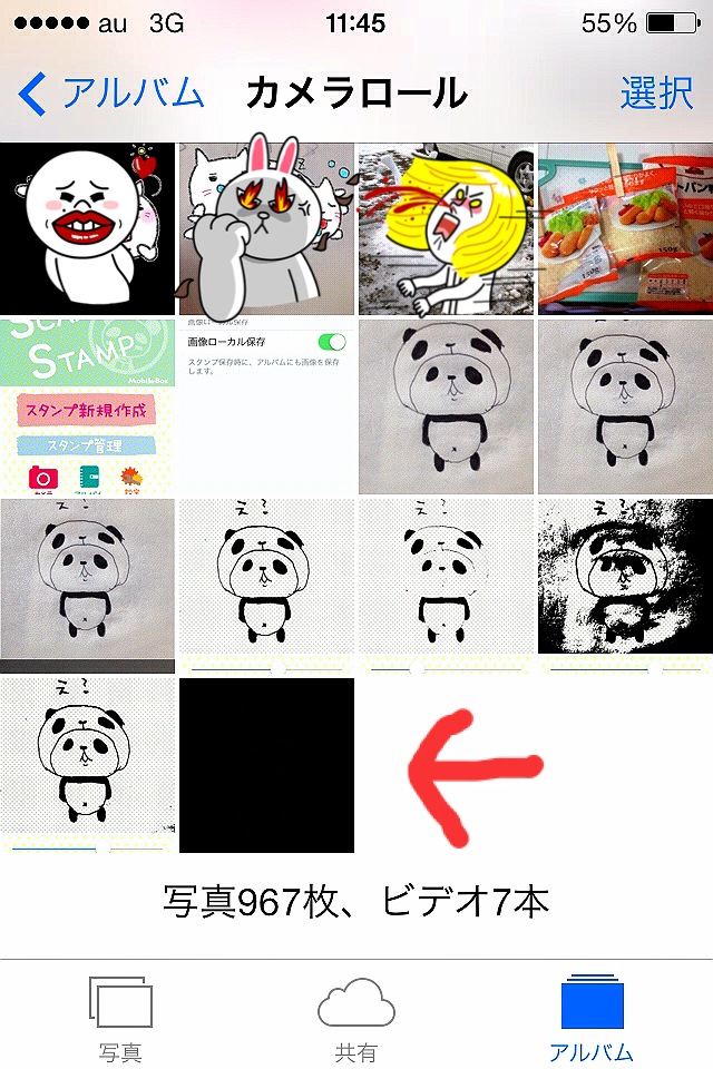 カメラロールの画像は真っ黒ですが、